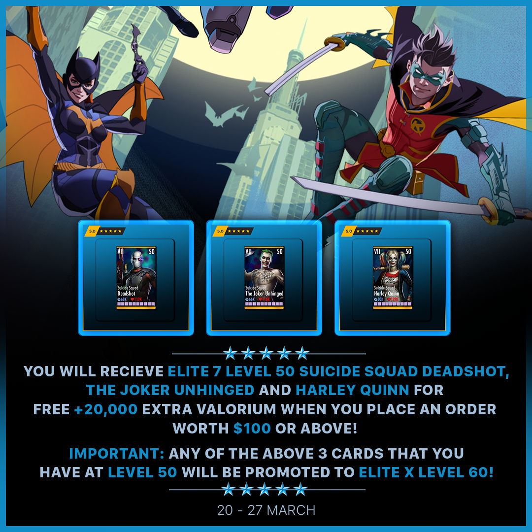 Welcome to Mirza Store― since 2021 we have have been offering Premier Injustice Gods Among Us Mobile Services to Injustice players all over the world. Our services cover BOTH iOS & ANDROID and not to mention, BAN-PROOF! From gears, to characters, to currencies! We have everything you need and it takes 60-MINUTES ONLY to recieve your order with the free currencies in your account!