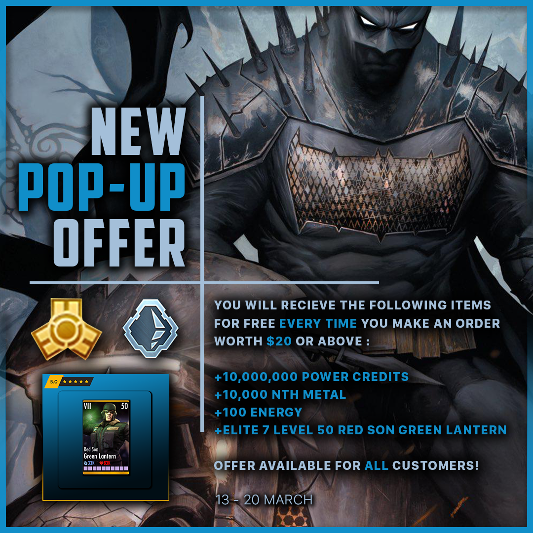 Welcome to Mirza Store― since 2021 we have have been offering Premier Injustice Gods Among Us Mobile Services to Injustice players all over the world. Our services cover BOTH iOS & ANDROID and not to mention, BAN-PROOF! From gears, to characters, to currencies! We have everything you need and it takes 60-MINUTES ONLY to recieve your order with the free currencies in your account!